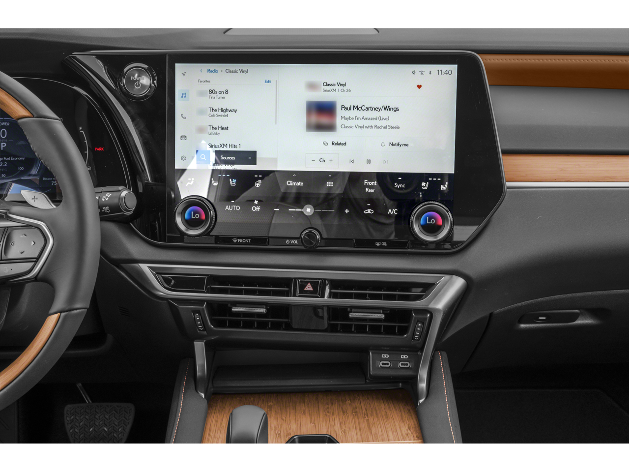 - Radio: Lexus Interface w/14" Touchscreen Display -inc: 12-speaker Lexus premium sound, 6 USB ports, Safety Connect and Service Connect w/up to 10-year trial, Remote Connect 3-year trial, Wi-Fi Connect w/up to 30-day/3GB trial, Drive Connect w/Cloud Navigation, Intelligent Assistant, Destination Assist 3-year trial, wireless Apple CarPlay integration and wireless Android Auto compatibility