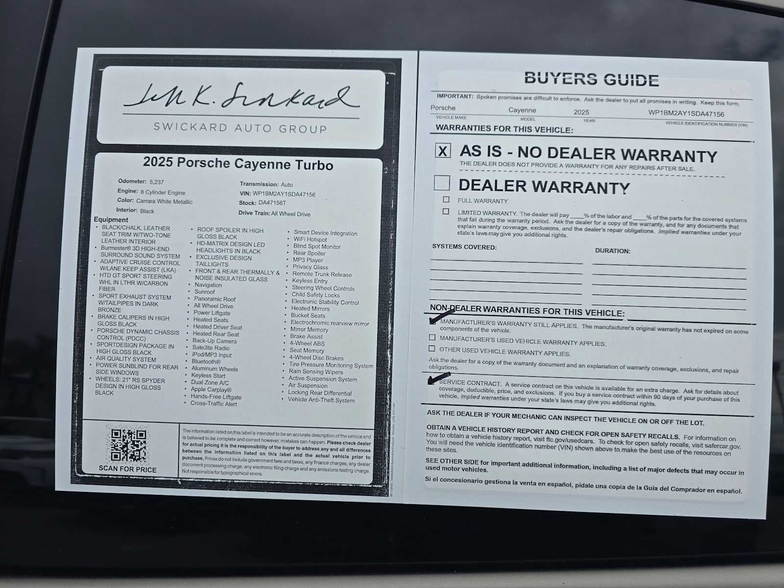Step into the future of luxury performance with the 2025 Porsche Cayenne Turbo E-Hybrid Coupe, where every drive through the stunning landscapes of Northern California becomes an exhilarating adventure. As you settle into the plush black and chalk leather seats, the world outside fades away, replaced by the symphony of the Burmester® 3D High-End Surround Sound System that transforms your favorite playlists into a concert hall experience. The panoramic roof invites the expansive Bay Area sky into your journey, amplifying the feeling of liberation as you weave through vibrant city streets or meander along scenic coastal routes. With the SportDesign Package in high gloss black, this Cayenne exudes a bold presence, while the 21 RS Spyder Design wheels grip the road with confidence. The Porsche Dynamic Chassis Control (PDCC) ensures that every turn is met with precision, making even the most challenging curves feel effortless. Adaptive Cruise Control with Lane Keep Assist adds a layer of convenience, allowing you to relax and enjoy the ride. The exclusive design taillights and brake calipers in high gloss black complete the striking aesthetic, while the sport exhaust system with dark bronze tailpipes delivers a thrilling soundtrack to your adventures. This Cayenne Turbo E-Hybrid Coupe is not just a vehicle; its a statement of power, performance, and sophistication. Ready to elevate your driving experience? Visit us today and let the Porsche Cayenne Turbo E-Hybrid Coupe take you on a journey where luxury meets innovation.According to CARFAXs Vehicle History Report, this car is Accident-Free, had only one previous owner and is well-maintained (regular oil changes; general maintenance)!!